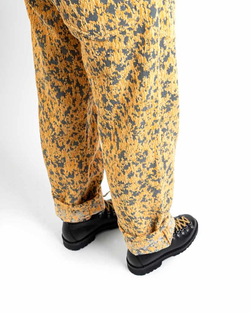 Pantalone in Velluto Jacquard LICHENI® (variante YVFSCAMO) 5 tasche, unisex, straight leg, leggermente relaxed, Made in Italy.