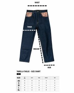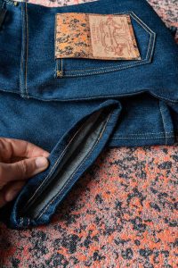 Diamo quindi ai nostri clienti la possibilità di comunicarci la lunghezza desiderata, una volta eseguito un ordine, e di ricevere il jeans con orlo a punto catenella su misura.